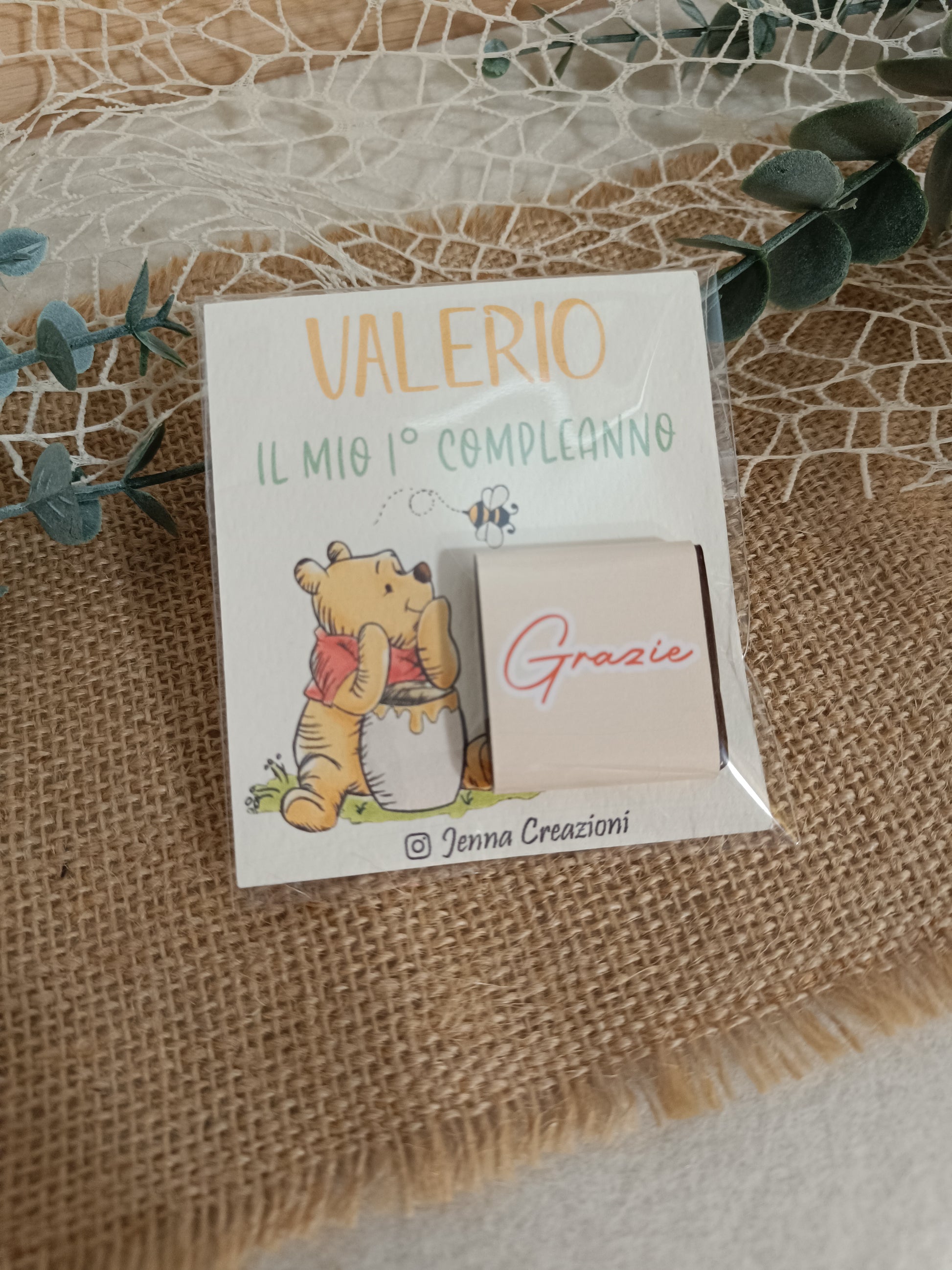 Questo cartoncino con cioccolatino è il modo perfetto per ringraziare gli ospiti di una festa di compleanno con un tocco di magia e dolcezza. Realizzato con carta martellata accompagnata da un un delizioso cioccolatino fondente.