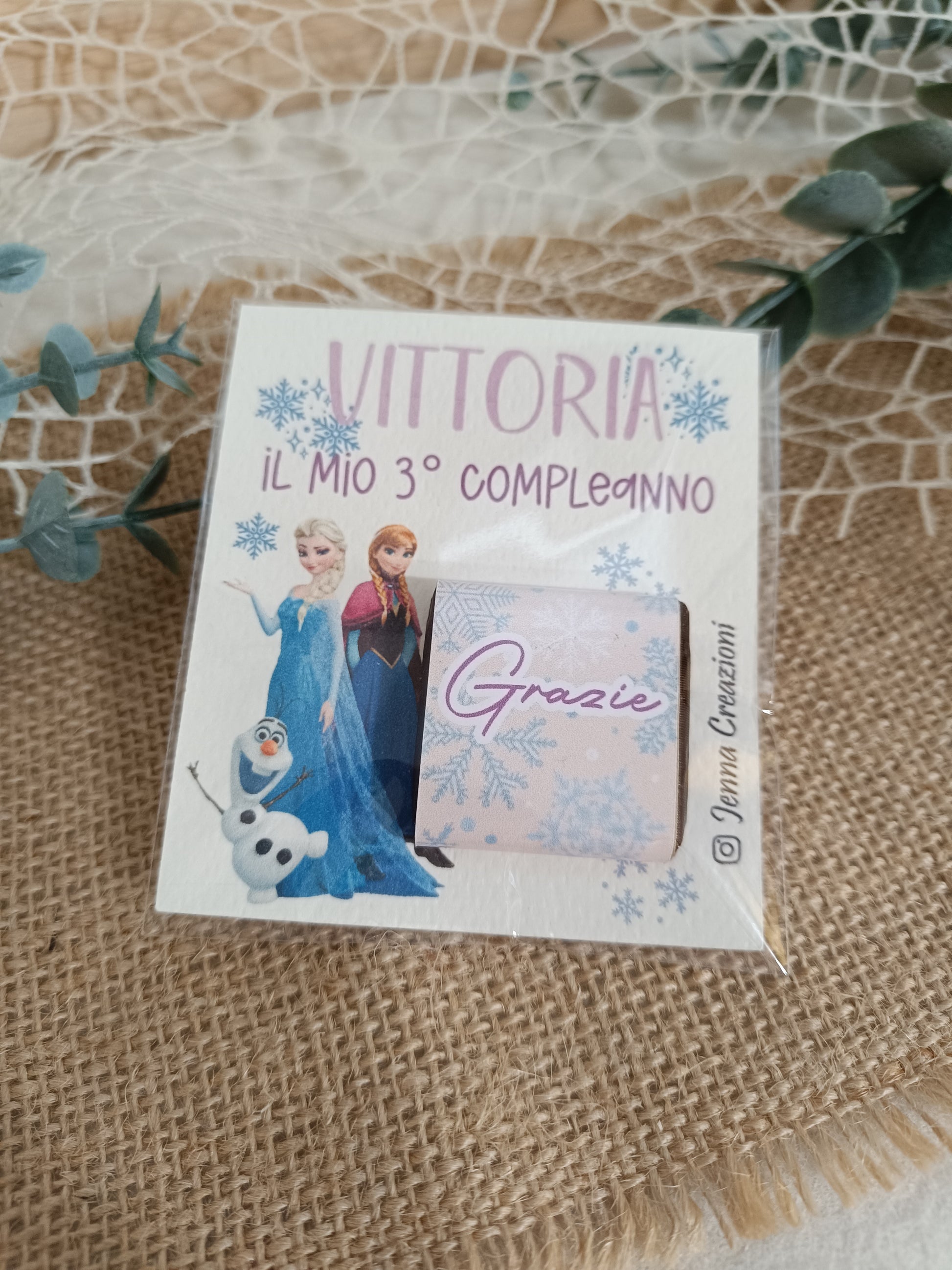 Questo cartoncino con cioccolatino è il modo perfetto per ringraziare gli ospiti di una festa di compleanno con un tocco di magia e dolcezza. Realizzato con carta martellata accompagnata da un un delizioso cioccolatino fondente.