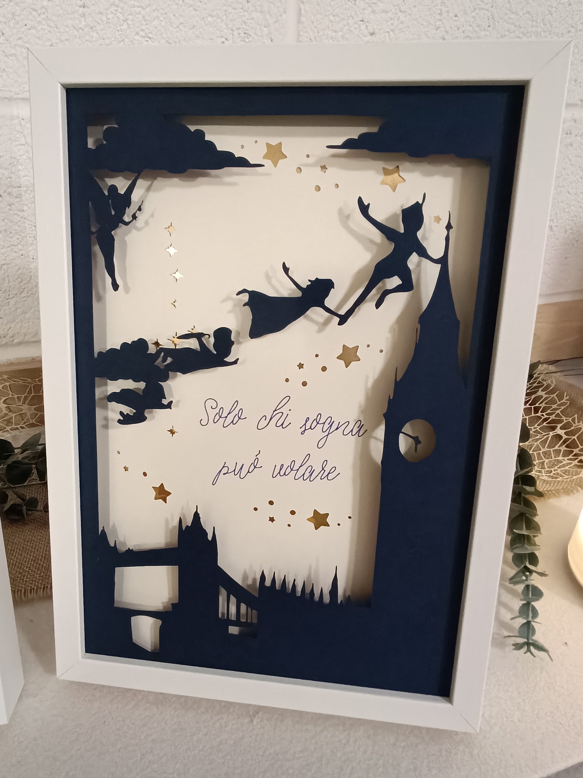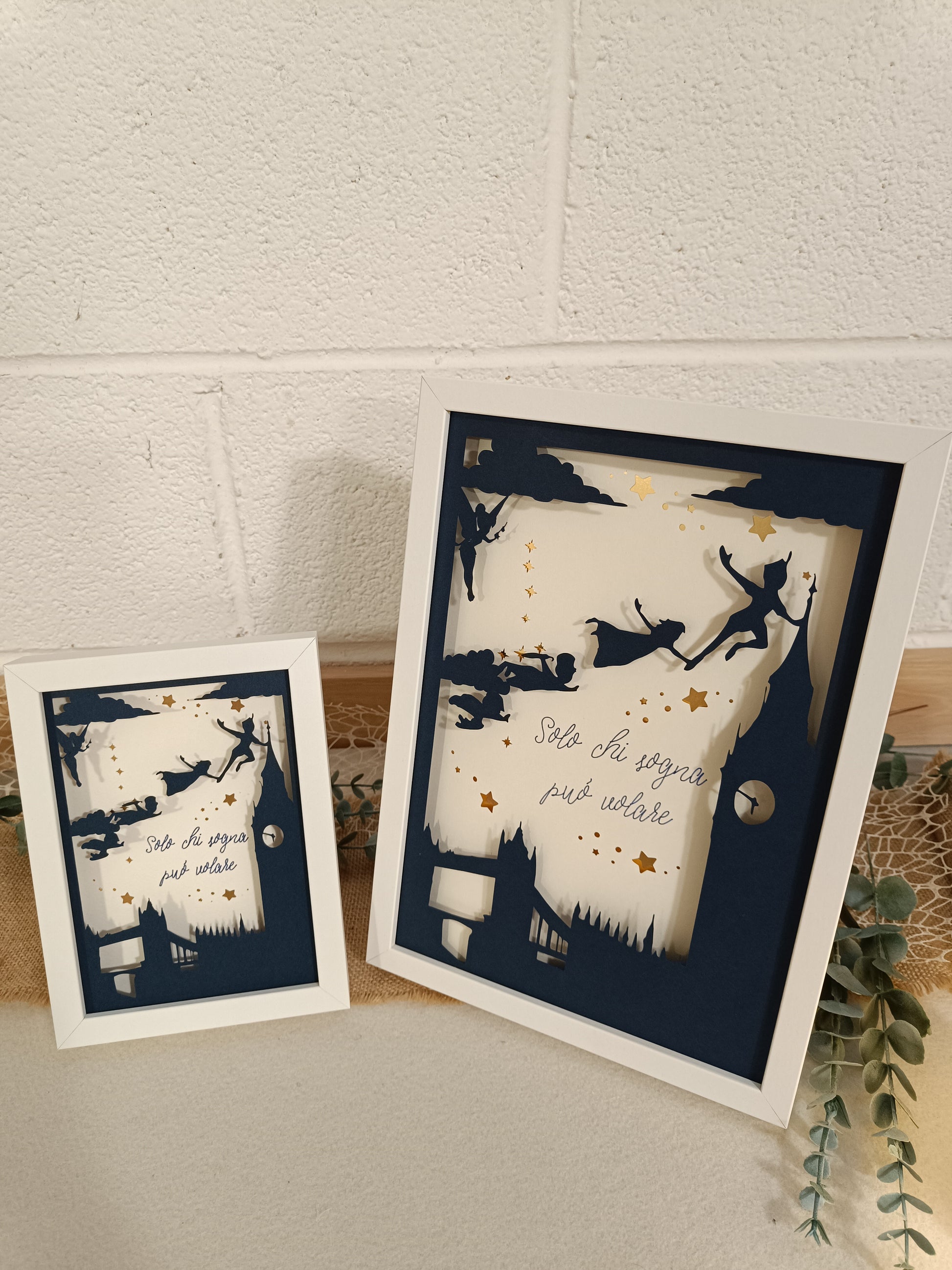 Aggiungi un tocco di magia alla tua casa con questa cornice artigianale dedicata a Peter Pan. Realizzata a mano con la tecnica della carta, ogni dettaglio è curato con passione per riportare alla luce l’incanto di uno dei personaggi più amati di sempre. Le linee eleganti e i motivi delicati rendono questa cornice un vero pezzo da collezione, capace di catturare la magia dei protagonisti più straordinari che ci siano.